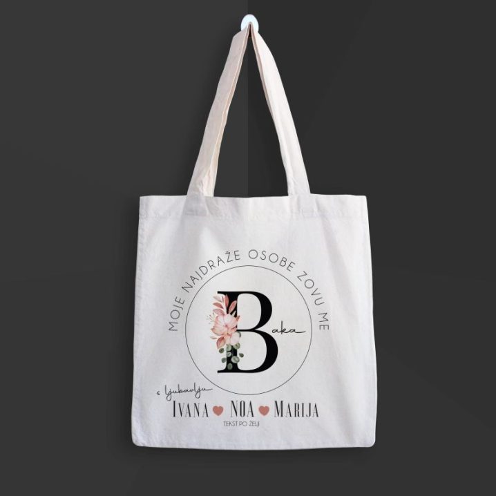 Šopingholičari, a i oni koji to nisu, oduševit će se ovom vrećicom modernog dizajna. Jer nije ona samo obična vrećica, već personalizirana za osobu koja nas je odgojila i pomogla nam da “stanemo na svoje noge”, a to je majka i/ili baka. Ova vrećica oduševiti će svaku majku ili baku.  I još k tomu ona je platnena što znači da je sigurna za okoliš i može podnijeti veliki teret.